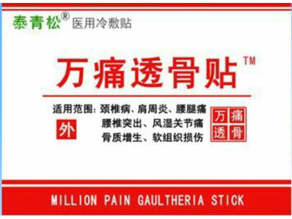 【商品名稱】萬痛筋骨冷療貼 【產(chǎn)品專利】ZL201630143562.1 【批準(zhǔn)文號】皖阜械備20150059號 【產(chǎn)品配方】同今堂古方配制 【適用范圍】適用于風(fēng)寒濕痛、腰腿痛、跌打損傷、頸椎病、肩周炎、腰椎間盤突出、骨質(zhì)增生、風(fēng)濕及類風(fēng)濕關(guān)節(jié)炎、坐骨神經(jīng)痛等引起的疼痛的人群。 【使用方法】使用時(shí)先擦凈患處、拆開包裝揭去背襯紙,將本品貼于患處即可,24小時(shí)更換一次。 【規(guī) 格】7×10cm×3貼/袋×2袋/盒×5盒/中盒×40中盒/件 產(chǎn)品特點(diǎn) 由各類風(fēng)寒濕痛、風(fēng)濕及類風(fēng)濕、關(guān)節(jié)炎、骨性疼痛、外傷跌打疼痛等引起的疼痛效果尤為顯著。
