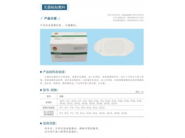 一次性使用無菌敷貼(簡(jiǎn)稱自粘性敷料貼)